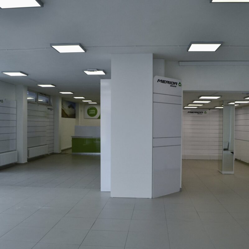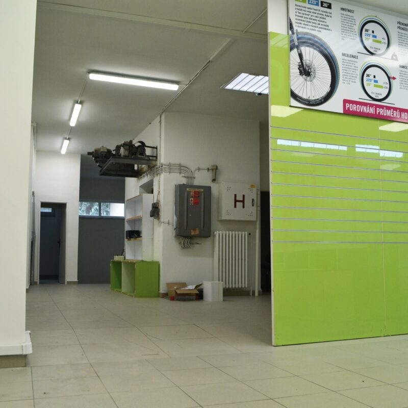Vnitřní prostory byly rekonstruovány v roce 2018 pro potřeby prodejce kol. Je možno zvážit zajištění stavebních úprav pro Vaše potřeby.